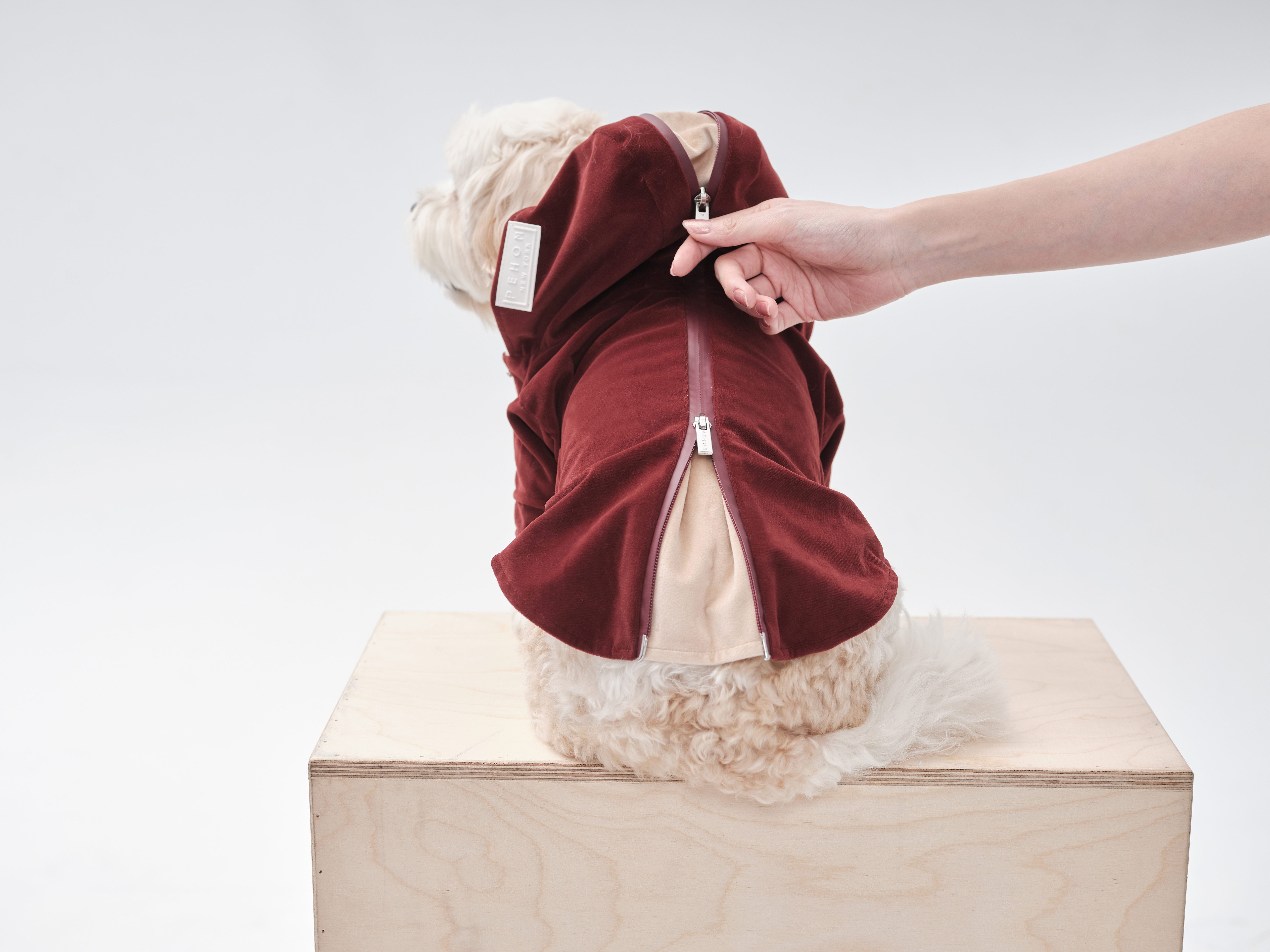 HUSTON HOODIE -Burgundy Luxury Dog Coat with Hood โ€“ Warm Winter Jacket for Small & Medium Dogs | Soft Fleece Lined, Stylish & Comfortable Pet Outerwear