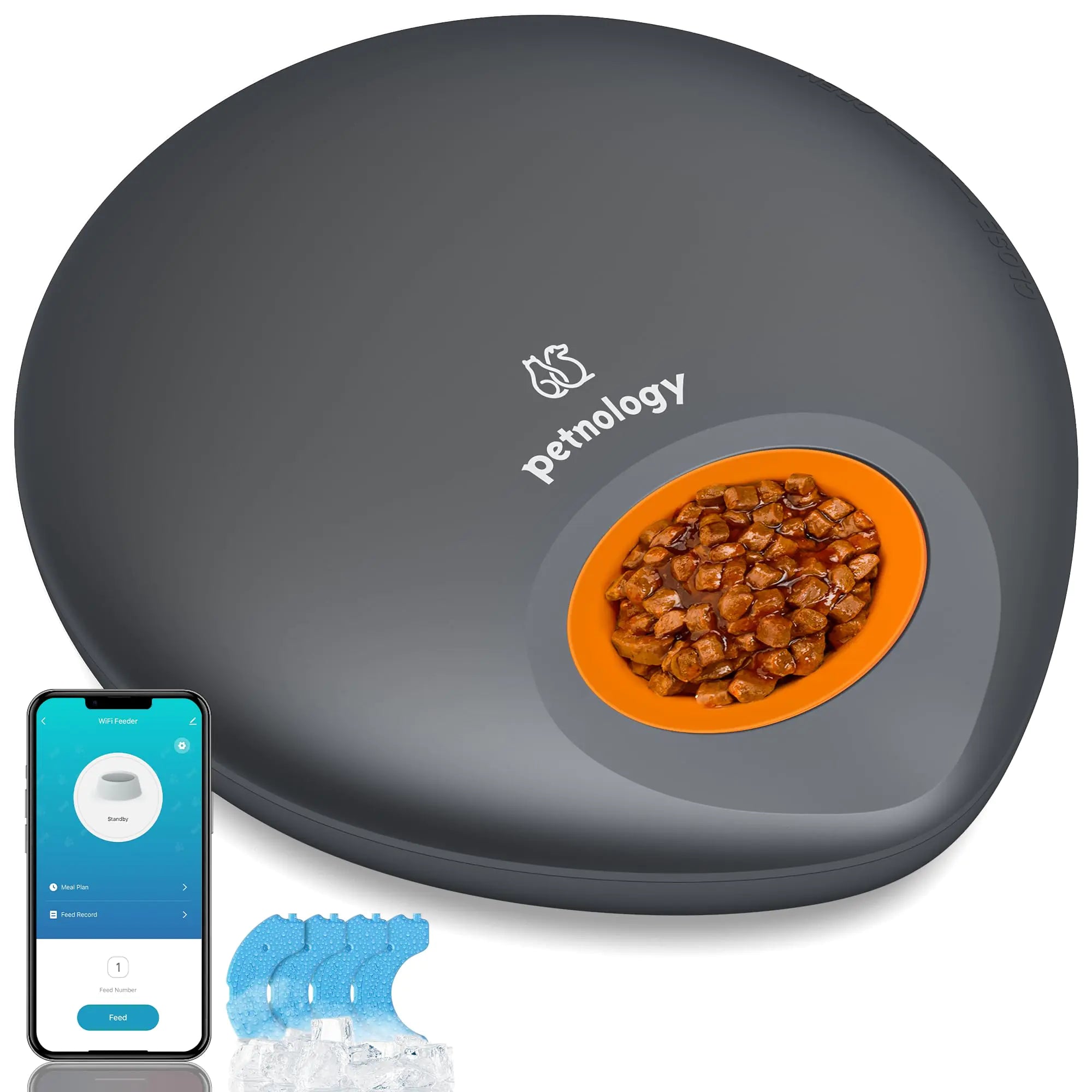 [【Optimal Cooling for Freshness】: Keep your pet’s wet food cool and fresh for hours with our cat wet food automatic feeder equipped with four reusable ice packs to maintain a steady low temperature of 5-13°C for up to 8 hours. Designed to lock out dust and insects this wet food automatic feeder preserves food quality so every meal is safe healthy and delicious for your pet. "【Smart App Control & Customizable Feeding】: Simplify your pet’s mealtime routine with our app-controlled automatic wet food cat feeder designed for flexible on-the-go feeding management. Schedule up to 5 meals monitor food intake and adjust portions effortlessly from your smartphone—no manual buttons needed. View feeding history at any time and easily share control with family members so everyone can help keep your pets nutrition on track whether you’re at home or away." 【Hassle-Free Cleaning】: Made from food-grade BPA-free ABS the 5-compartment tray holds up to 1.6 lbs of dry food or 2 lbs of wet food per section. The removable design allows for quick and easy cleaning ensuring every meal is served in a fresh hygienic compartment for your pet’s safety and your convenience. 【Interactive Voice Call for Comfort】: Keep your pet feeling loved and secure with our cat food dispenser’s 10-second voice recording feature. Play your recorded message at mealtime to let your pet hear your voice adding a personal touch that offers comfort and companionship—even when you’re not at home. 【Reliable Dual Power Options】: Ensure your pet’s meals stay on schedule even during power outages. The Petnology feeder offers flexible power options—use the included USB adapter for a wired setup or switch to 3 D-size batteries for portable backup power guaranteeing mealtime consistency wherever you are.]